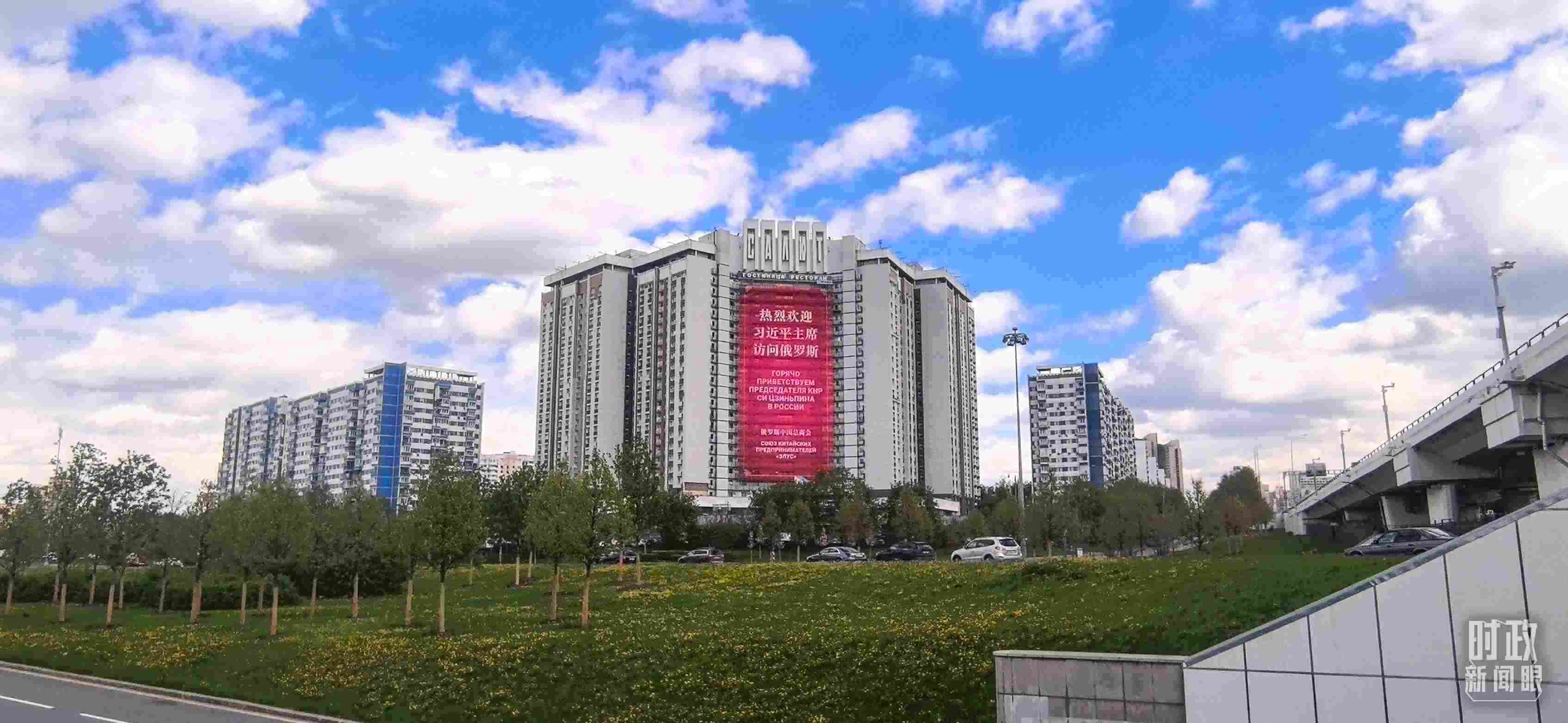 △莫斯科街頭醒目的歡迎標(biāo)語。(總臺央視記者范凱拍攝)