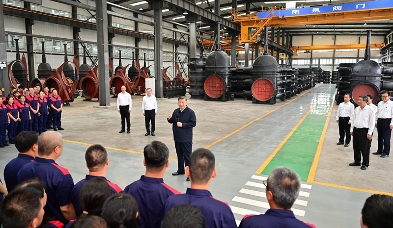 7月7日至8日,中共中央總書記、國家主席、中央軍委主席習(xí)近平在山西考察。這是7日下午,習(xí)近平在陽泉閥門股份有限公司考察。