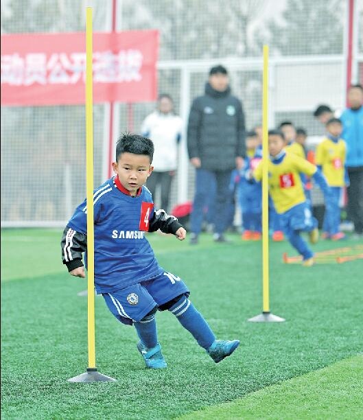 “我們是聽朋友的消息來參加選拔的。”蘇虎街小學一年級的李宸報名參加了選拔活動,李宸的媽媽介紹說:“孩子7周歲,去年冬天參加了一個足球訓練班,然后就把這項運動當成他興趣之一進行了培養(yǎng)和支持。”李宸接觸足球緣于他的父親是一名足球運動愛好者,這在孩子的興趣引導上起了很大的作用“。他爸爸很喜歡足球這個運動,多少影響到了他。如果孩子喜歡,我們當然會一直支持下去。”李宸的媽媽說。