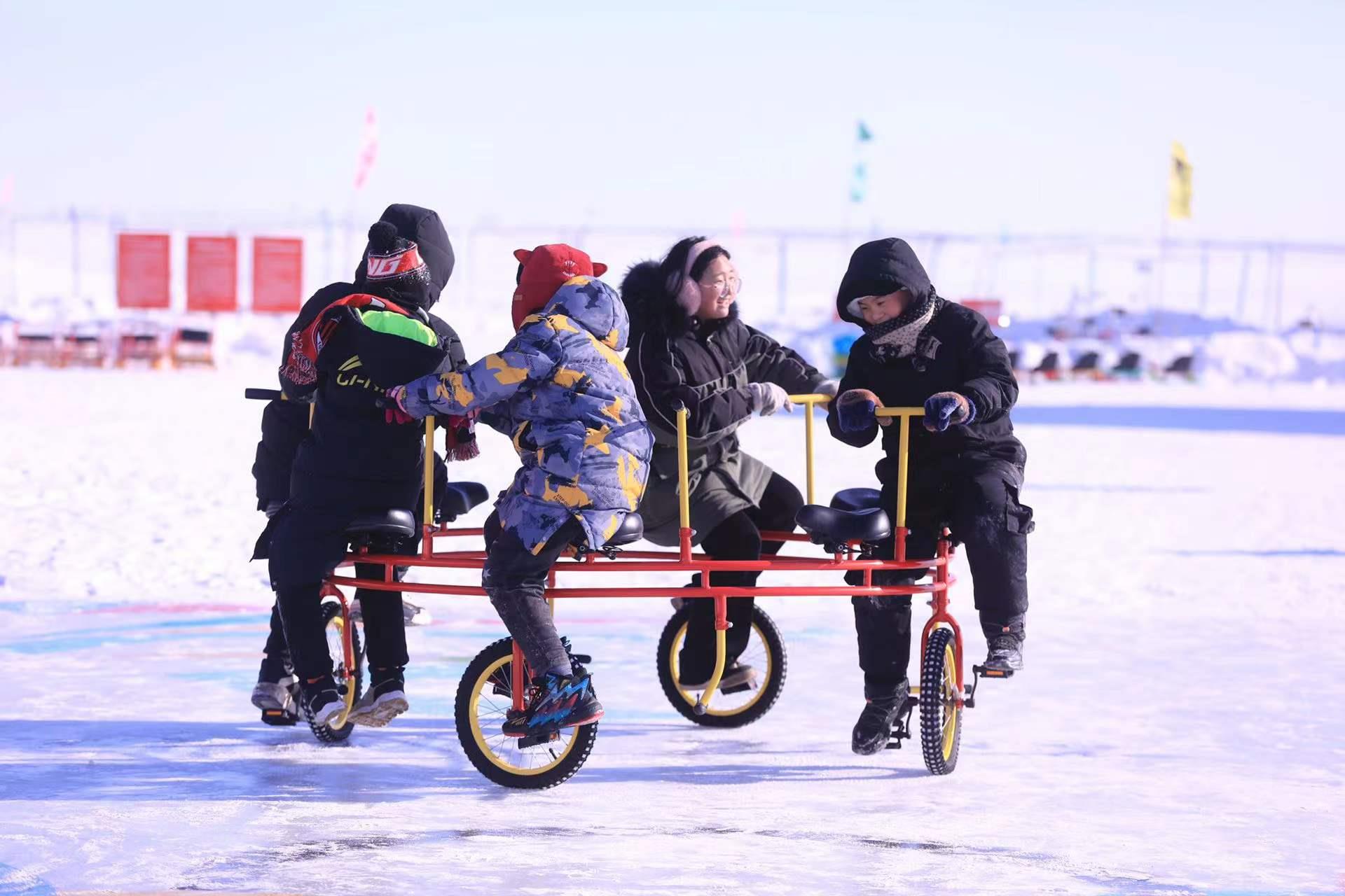 在莫旗冰雪嘉年華項目區(qū)內(nèi),有全家一起玩樂的,有飽覽陽光雪景打卡拍照的,還有參與享受冰雪帶來的暢快和刺激的,比起單一的觀光游覽,超大雪滑梯,雪地摩托車、雪地曲棍球、雪地漂移香蕉船等十多項冰雪娛樂項目,受到了游客的喜愛與追捧。大家用不同的運動加娛樂方式助力冬奧。自行車戶外運動、徒步健身、滑冰、羽毛球、籃球、足球、乒乓球、太極拳、太極劍、十幾個運動隊都在開展各種助力奧運活動。就連一群群的小娃娃也在冰雪上盡享運動快樂。(蔣希武)