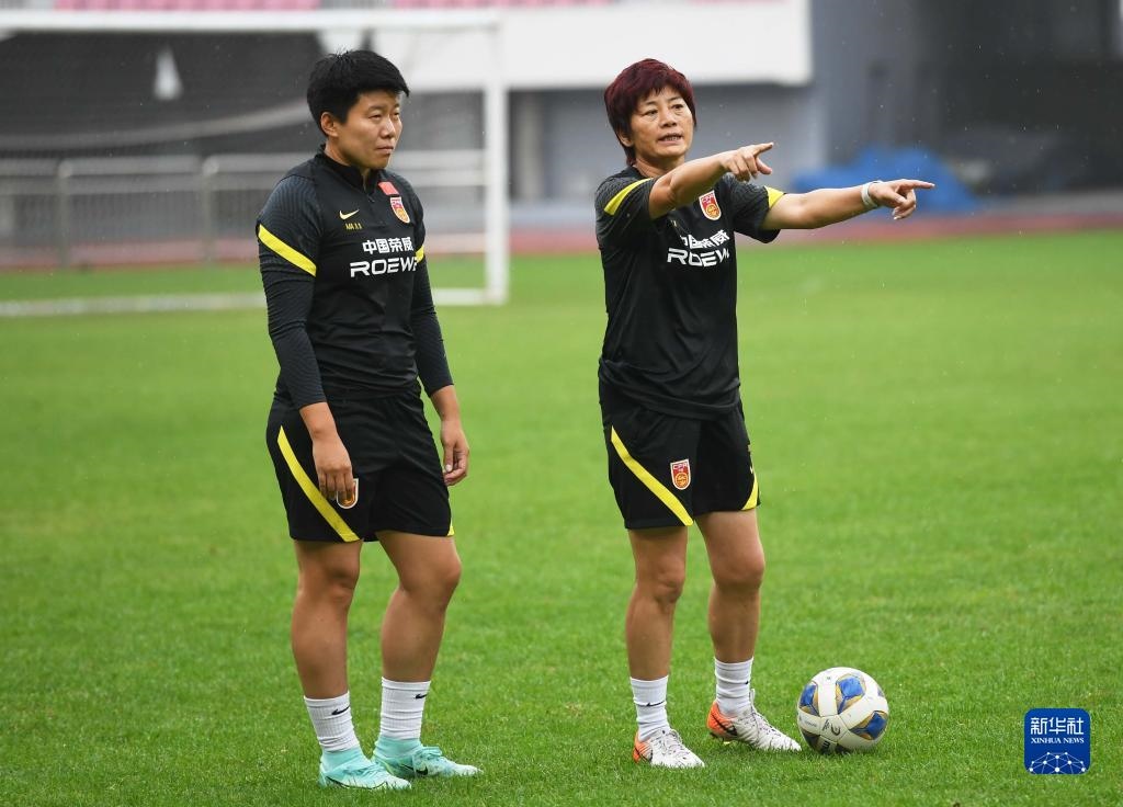 7月12日,主教練水慶霞(右)在訓練中。新華社記者 李紫恒 攝