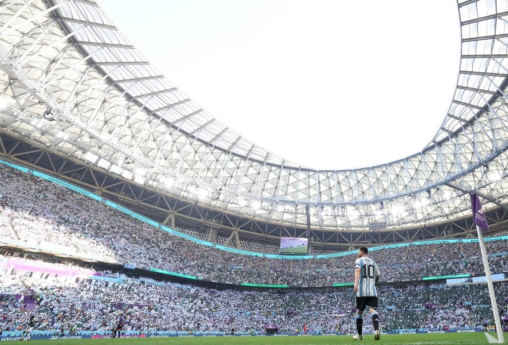 11月22日,在卡塔爾盧賽爾球場進行的2022卡塔爾世界杯足球賽C組比賽中,阿根廷隊以1比2不敵沙特阿拉伯隊。新華社記者曹燦攝
