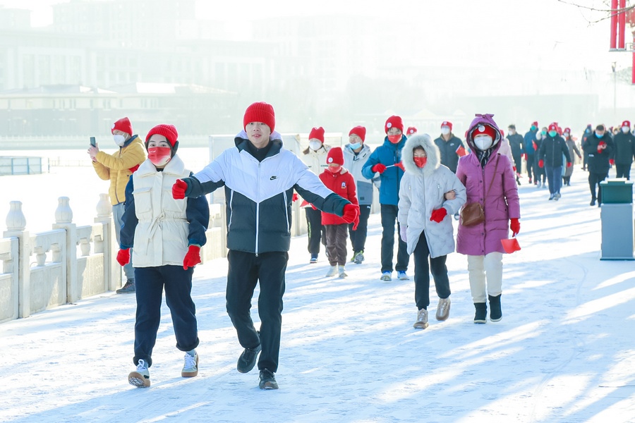 徒步路線沿呼和浩特市小黑河沿線設(shè)置,全長(zhǎng)五公里。參與群眾不僅獲得了象征紅火、喜慶的紅帽子、紅手套等紀(jì)念品,還紛紛在新春背景墻下拍照打卡,表達(dá)對(duì)新年的祝福。