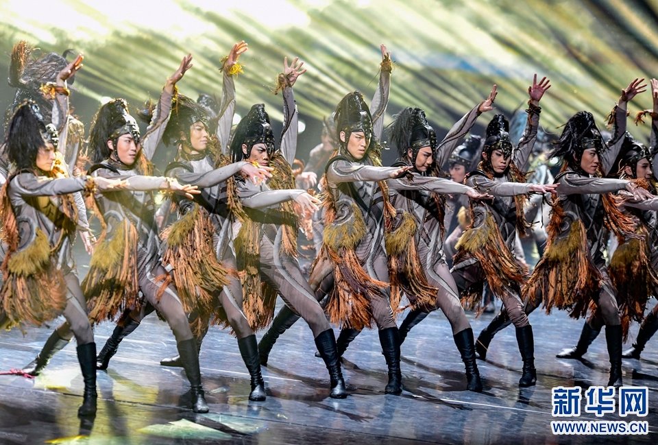 1月12日,演員在2022年內(nèi)蒙古新年舞蹈晚會中表演群舞《敬》。新華網(wǎng)發(fā)(王正攝)