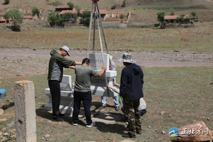 靠人力將紀念碑背到溝內(nèi)深處