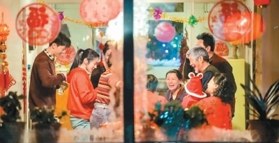 春節(jié)是集除舊布新、拜神祭祖、祈福辟邪、親朋團圓、歡慶娛樂為一體的民俗大節(jié),也最具向心力。正因如此,在影視作品中,春節(jié)總是營造情境、表達情感的最佳選擇。在電視劇《以家人之名》中,除夕夜三兄妹和兩位老爸一邊看春晚,一邊吃團圓飯,期間電話不斷,親友們紛紛電話拜年。妹妹還提醒兩個哥哥別忘記給外婆和二姨打電話拜年。其實,這其樂融融的一家人并沒有血緣關(guān)系,而這個“不是一家人,勝似一家人”的溫馨場面,深化了暖心的青春成長故事,傳遞出超越血緣的人間真情與大愛。除舊迎新之際,人們不免產(chǎn)生更為深刻透徹的生命感懷,也期盼來年有個好運勢、好光景。