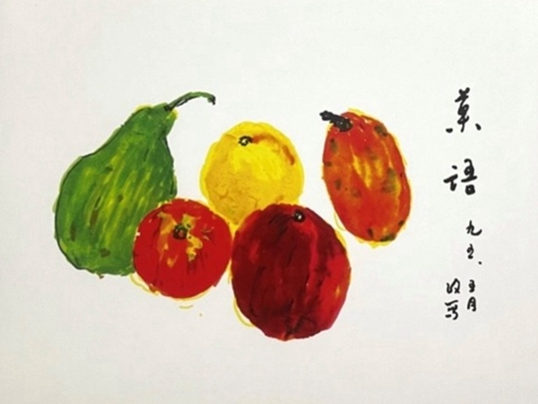農(nóng)歷進(jìn)入了立夏,桃李遍天下的李政道,對著面前果盤里紅黃綠紫的水果,畫了一張名為《果語》的寫生畫寄給鄭志鵬。在那個純真的時代,在這張小小的賀卡上,沒有祝福文字,只有簡潔的藝術(shù)表達(dá)和深切的內(nèi)心感受。這色彩豐富的《果語》,不知包含著多少祝福和希望?。?/p>