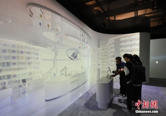9月1日,主媒體中心展出的數(shù)字超市吸引參觀者駐足。當日,杭州亞運會主媒體中心舉行媒體開放日活動,現(xiàn)場亮相的科技與傳統(tǒng)文化項目引人體驗。中新社記者 王剛 攝