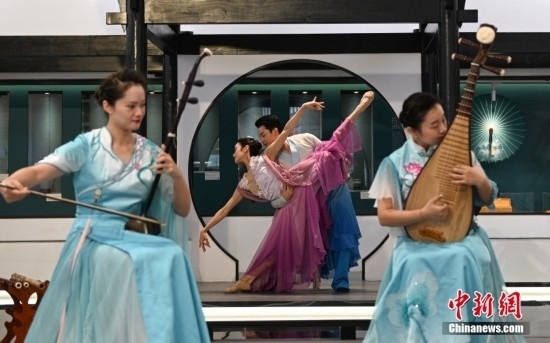 9月1日,表演者演繹中國傳統(tǒng)器樂和舞蹈。當日,杭州亞運會主媒體中心舉行媒體開放日活動,現(xiàn)場亮相的科技與傳統(tǒng)文化項目引人體驗。中新社記者 王剛 攝