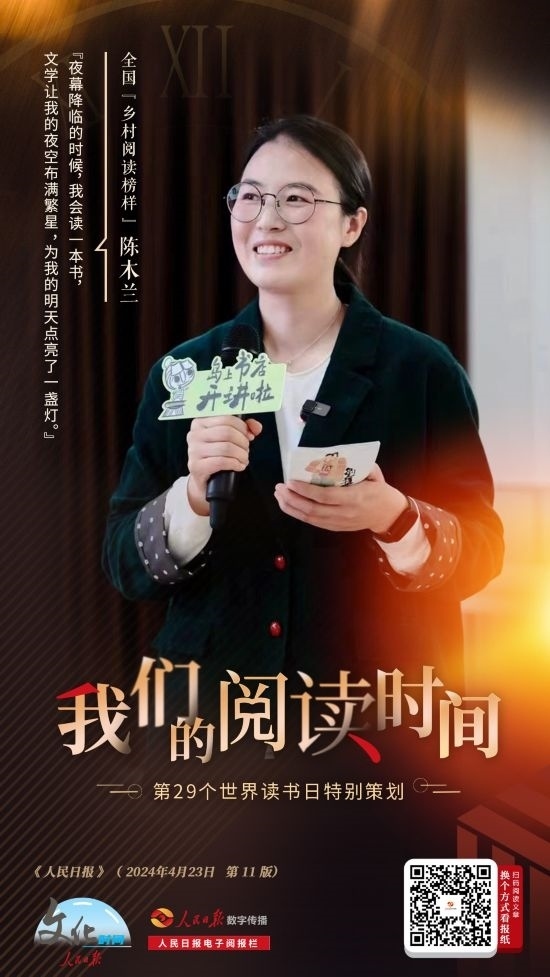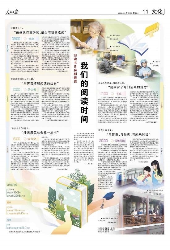 閱讀是什么?是一頁(yè)一卷,傳承千年文脈;是出行忙碌,隨身攜帶的星辰大海;是廣袤山鄉(xiāng),指引孩子們成長(zhǎng)的燈塔;也是靜謐時(shí)光,陪伴無(wú)數(shù)個(gè)日夜的詩(shī)和遠(yuǎn)方……第二十九個(gè)世界讀書(shū)日,我們關(guān)注多種多樣的閱讀時(shí)間,這些鮮活的場(chǎng)景展現(xiàn)著當(dāng)下人們閱讀生活的方方面面。讓我們從不同行業(yè)、不同年齡的讀者視角,感受文明的印記,見(jiàn)證時(shí)代進(jìn)步的力量。