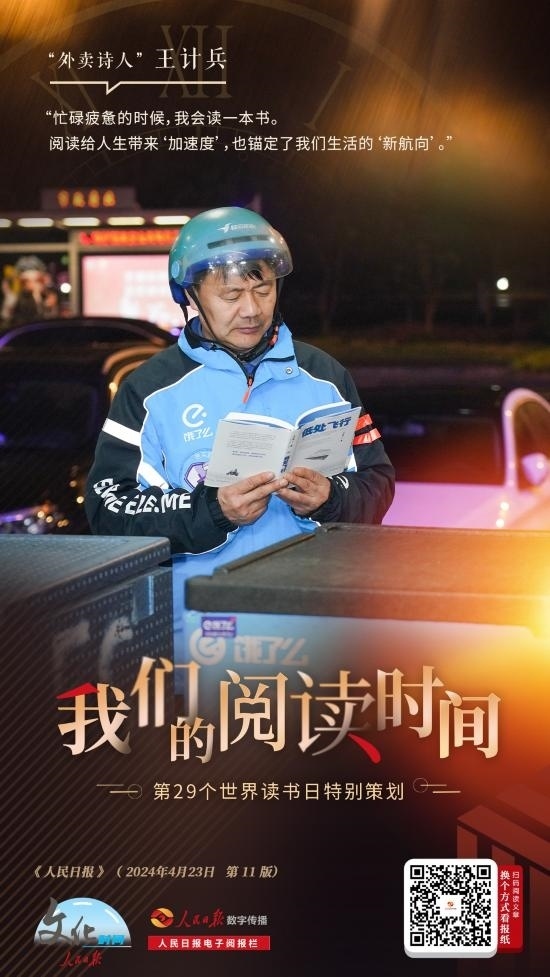 “我的外賣(mài)箱里總會(huì)放一本書(shū),在等外賣(mài)的間隙或者訂單空閑的時(shí)候看,現(xiàn)在主要在手機(jī)上閱讀?!比缃?,王計(jì)兵已創(chuàng)作5000多首詩(shī)歌,出版3本詩(shī)集,還在進(jìn)行非虛構(gòu)寫(xiě)作。他說(shuō):“閱讀給我的人生帶來(lái)‘加速度’,為忙碌的生活錨定方向感。”
