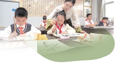 安徽合肥市小學(xué)生正在書(shū)寫(xiě)家風(fēng)家訓(xùn)。趙 明攝(影像中國(guó))