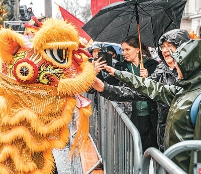 新年伊始,英國(guó)首都倫敦下起了雨。盡管天公不作美,人們迎接新年的熱情不減,第39屆倫敦新年巡游如期進(jìn)行,這也是英國(guó)當(dāng)?shù)匦履陸c典的重要組成部分。在來自世界各地的花車表演中,倫敦華埠商會(huì)方隊(duì)作為唯一的華人方隊(duì),舞龍舞獅、花車表演風(fēng)采十足。