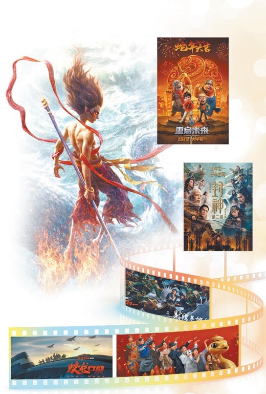《哪吒之魔童鬧海》《唐探1900》《熊出沒·重啟未來》《蛟龍行動》《封神第二部:戰(zhàn)火西岐》《射雕英雄傳:俠之大者》等6部影片同步上映,2025年春節(jié)檔被稱為“最強春節(jié)檔”。家國情懷、傳統(tǒng)文化、IP電影、電影工業(yè)化等成為這個春節(jié)檔的關(guān)鍵詞。
