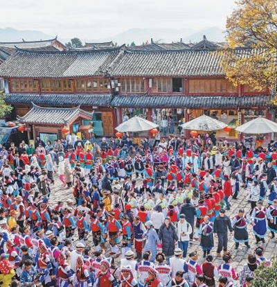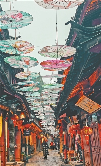 麗江古城涵蓋了作為茶馬古道重鎮(zhèn)的大研古城、從農耕文明向商業(yè)文明過渡的“活標本”束河古鎮(zhèn)、有著原生態(tài)納西村落的白沙古鎮(zhèn),融匯了漢族、白族、彝族、藏族、納西族等多民族文化特色。作為一座沒有城墻的古城,麗江古城以包容與開放的姿態(tài),歷經(jīng)文化的交融與碰撞,源源不斷地孕育出充滿魅力的文化新形態(tài)。