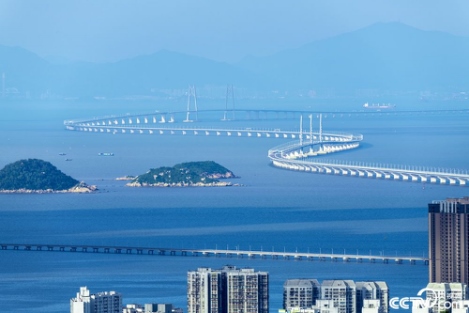 港珠澳大橋于2018年10月24日上午9時正式通車。港珠澳大橋全長55公里,集橋、島、隧于一體,是世界最長的跨海大橋。