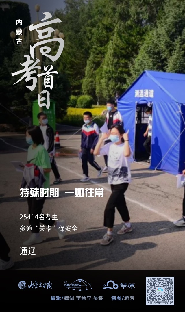 今年,我區(qū)高考報名總?cè)藬?shù)197901人,其中參加全國統(tǒng)一考試163812人。全區(qū)共設(shè)105個考區(qū)、184個考點、5786個考場。內(nèi)蒙古各盟市全力做好防護與保障工作,高考首日,一如往常。