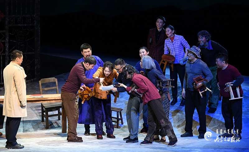 在劇目創(chuàng)作排演的過程中,內(nèi)蒙古民族藝術(shù)劇院還特別聘請了上海戲劇學院藝術(shù)研究所副教授高城博士、上海話劇藝術(shù)中心導(dǎo)演郭洪波等話劇界名家,通過導(dǎo)師帶學員的方式,給團隊給予專業(yè)指導(dǎo)和建議,極大提升了劇院編劇、導(dǎo)演和演員等青年人才的專業(yè)水平和能力。2019年,完成首演后的《紅手印》迅速投入基層巡演中,先后前往烏蘭察布市察右中旗、察右前旗、巴彥淖爾市烏拉特中旗、烏拉特前旗等地演出,不僅豐富了基層百姓的精神文化生活,也收獲了最真實的觀眾反饋。