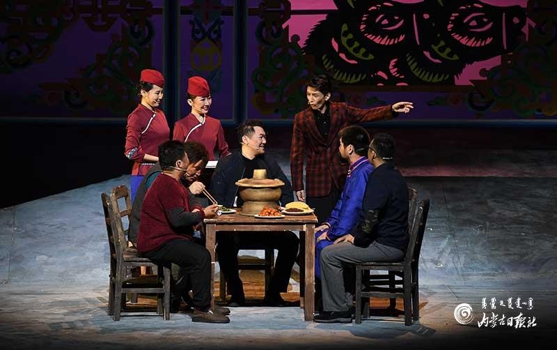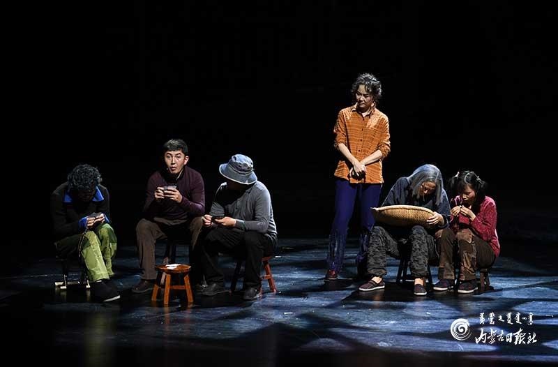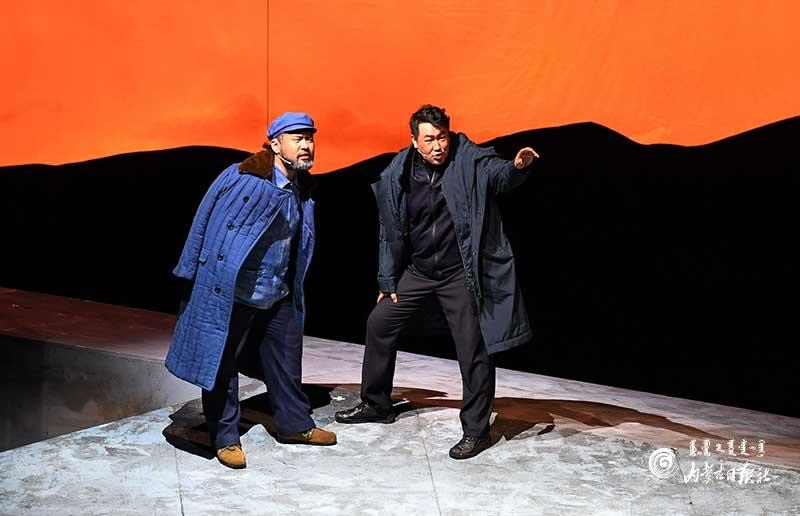 參演《紅手印》的都是來自草原的蒙古族演員,不僅要完成漢語的臺詞,還要熟練自然地講出大量內(nèi)蒙古西部方言對白?!皩τ谠拕⊙輪T來說,臺詞功底太重要了。為了練好方言,我們好多演員早起練功的時候嘴里都念念有詞地說著西部方言?!毖輪T烏仁朝魯門說。他扮演的新扎木村主任令人印象深刻,一個一心想帶百姓致富卻屢遭失敗的老黨員形象。“之前表演歷史題材的話劇大多是從影像和資料了解人物,這部戲的題材貼近觀眾們的現(xiàn)實生活,必須接地氣才能得到認可。我通過寫人物小傳的方式,深挖村主任的人物個性和從失望到燃起希望的內(nèi)心世界,讓觀眾能夠認可這個形象?!睘跞食旈T說。
