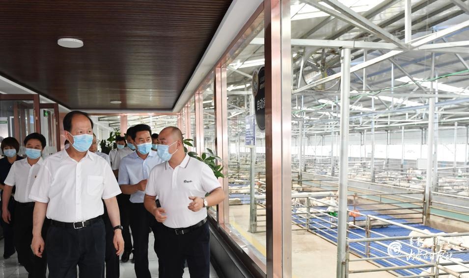 8月18日,石泰峰書記在巴彥淖爾市五原縣金草原現(xiàn)代肉羊標準化養(yǎng)殖園區(qū),了解產業(yè)扶貧情況。內蒙古日報記者 袁永紅 攝