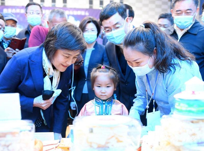 10月17日,自治區(qū)黨委副書記、自治區(qū)主席布小林,在全區(qū)推進(jìn)奶業(yè)振興暨民族傳統(tǒng)奶制品產(chǎn)業(yè)發(fā)展現(xiàn)場會上參觀各盟市民族傳統(tǒng)奶制品產(chǎn)品展示。內(nèi)蒙古日報(bào)記者 韓卿立 攝