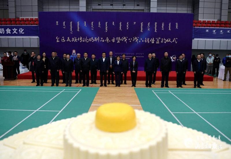 10月17日,自治區(qū)政府在錫林郭勒盟鑲黃旗召開全區(qū)推進(jìn)奶業(yè)振興暨民族傳統(tǒng)奶制品產(chǎn)業(yè)發(fā)展現(xiàn)場會。自治區(qū)黨委副書記、自治區(qū)主席布小林,國家市場監(jiān)督管理總局副局長孫梅君,自治區(qū)副主席歐陽曉暉出席活動(dòng)并共同見證了鑲黃旗乳香飄乳業(yè)公司制作的禮儀奶酪盤獲得“大世界基尼斯之最”紀(jì)錄認(rèn)證。內(nèi)蒙古日報(bào)記者 韓卿立 攝