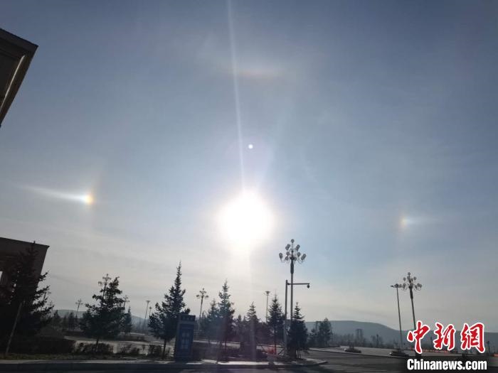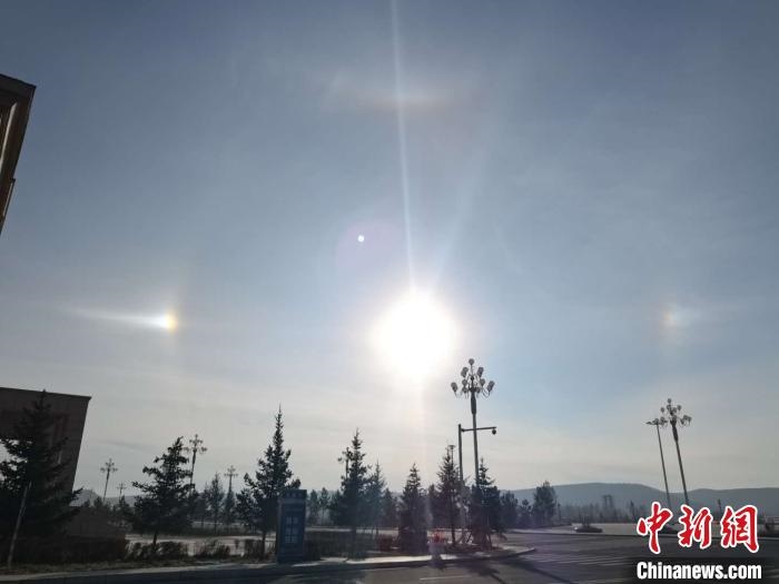 記者19日從內(nèi)蒙古自治區(qū)呼倫貝爾市氣象局獲悉,當日清晨,內(nèi)蒙古呼倫貝爾市根河市和牙克石市兩地同時出現(xiàn)“幻日”和“環(huán)天頂弧”奇觀。