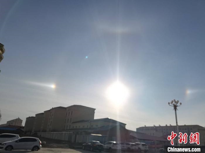 圖為內(nèi)蒙古兩地同時出現(xiàn)幻日、環(huán)天頂弧奇觀。紀成成攝