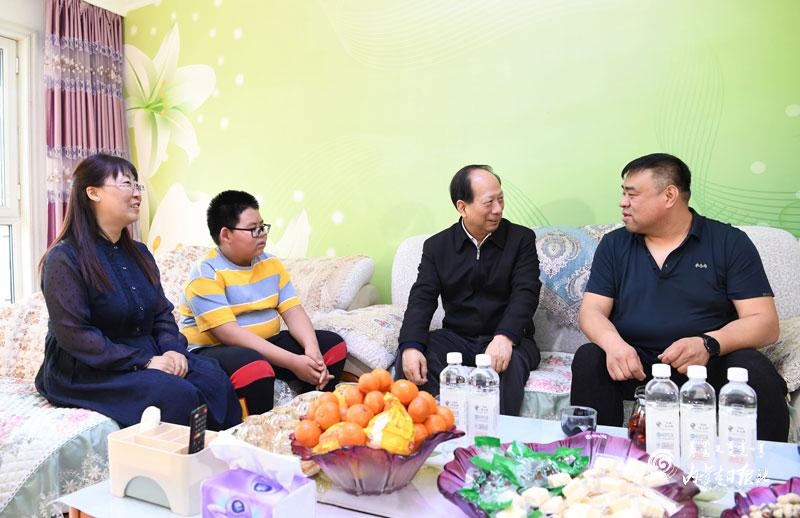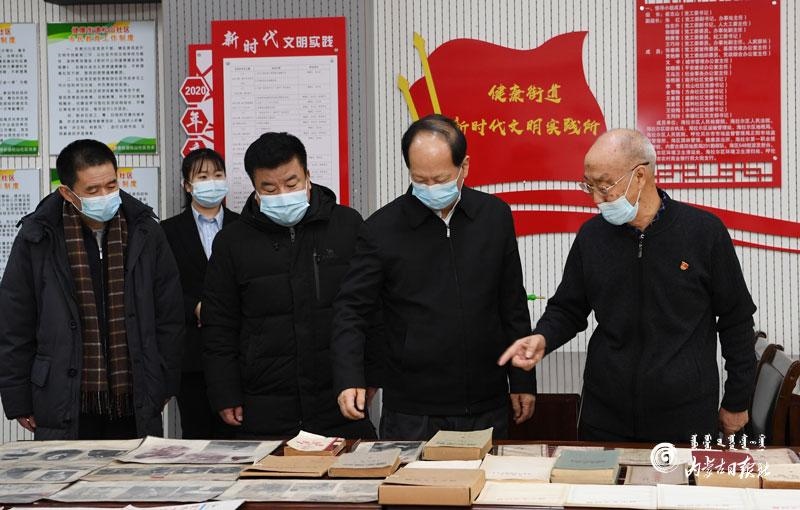 在海拉爾區(qū)神寶小區(qū),石泰峰與自治區(qū)勞模于景斌拉起家常,詳細了解他十幾年如一日堅守生產一線學技術、練本領、搞創(chuàng)新的先進事跡。石泰峰說,實踐出真知,只要肯鉆研、行行出狀元,新一代的工人和廣大勞動者要向勞模學習,弘揚勞模精神,充分發(fā)揮有知識、懂技術、善創(chuàng)新的優(yōu)勢,不斷在工作崗位上創(chuàng)造新的業(yè)績、作出更大貢獻。在天驕家園小區(qū),石泰峰與老黨員祁寶良相談甚歡,他一邊翻看老照片和回憶錄,一邊與老人共同回顧崢嶸歲月。石泰峰說,老黨員老同志的革命經歷是我們黨寶貴的精神財富,我們要多給年輕人講一講,讓他們銘記光榮革命歷史,珍惜今天幸福生活,更加奮發(fā)有為地建功新時代。石泰峰叮囑老人保重身體,祝福老人健康長壽。