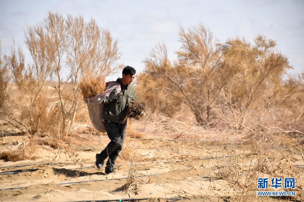 在且末縣,當(dāng)?shù)卦谥袊?guó)科學(xué)院新疆生態(tài)與地理研究所的技術(shù)支持下,嘗試種植梭梭和大蕓。梭梭耐鹽堿、耐干旱,能防風(fēng)固沙;寄生在梭梭根部的大蕓具有很高的藥用價(jià)值,能讓沙漠產(chǎn)出經(jīng)濟(jì)價(jià)值。通過(guò)“承包治理、開(kāi)發(fā)經(jīng)營(yíng)、收益歸己”的招商原則,目前已吸引10家企業(yè)參與進(jìn)來(lái),走出一條生態(tài)與經(jīng)濟(jì)同步發(fā)展的新路。