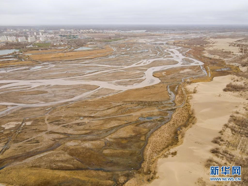 新疆且末縣城與塔克拉瑪干沙漠之間隔著車爾臣河(3月31日攝,無(wú)人機(jī)照片)。新華社記者 高晗 攝