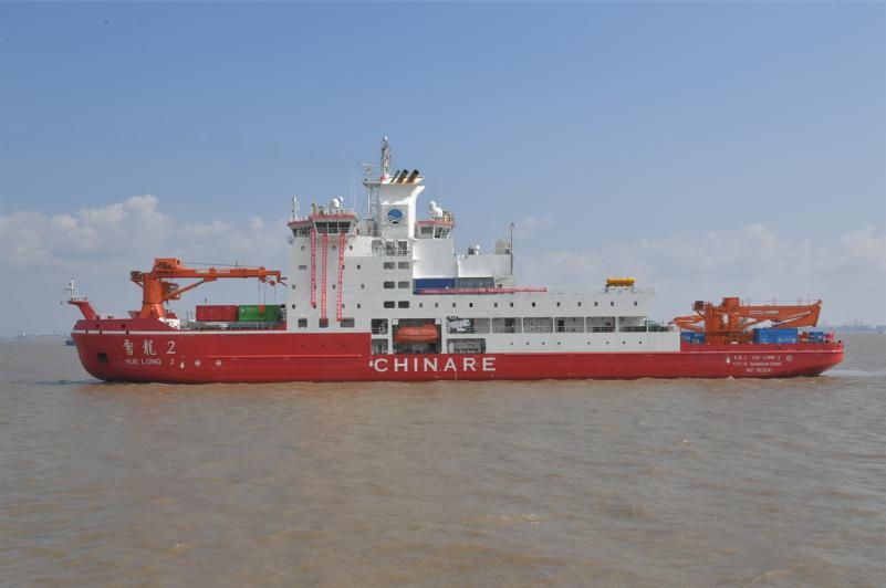 “雪龍2”號總長約122米,寬約22米,設(shè)計(jì)排水量近1.4萬噸,續(xù)航力達(dá)到2萬海里,是中國第一艘自主建造的極地科學(xué)考察破冰船,也是世界上首艘具備雙向破冰能力的破冰船。