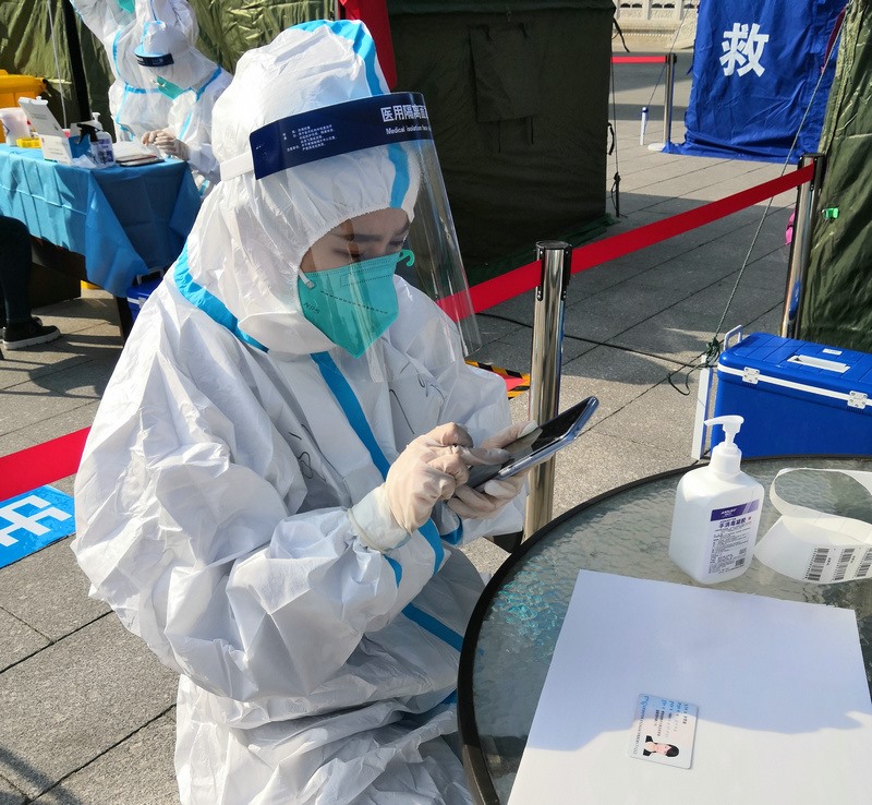 “昨天分配的任務(wù)是信息采集,因?yàn)榈诙喓怂釞z測(cè)要使用新的采集系統(tǒng),所以今天早晨7:00到崗后,大家開(kāi)始學(xué)習(xí)信息采集系統(tǒng)的使用。信息采集不能出任何差錯(cuò),每一個(gè)信息采集員都很緊張,謹(jǐn)慎操作每一步。”在呼和浩特市玉泉區(qū)大召社區(qū)核酸檢測(cè)點(diǎn)參加志愿服務(wù)的張華媛說(shuō),8:00準(zhǔn)時(shí)開(kāi)始第二次核酸檢測(cè),直到下午2:00換崗,連續(xù)6小時(shí)緊張謹(jǐn)慎的信息采集,中途沒(méi)有休息過(guò),整個(gè)身體感覺(jué)有點(diǎn)僵了。雖然很累,但是能成為抗疫戰(zhàn)士中的一員,和醫(yī)護(hù)人員、社區(qū)工作者及其他志愿者一起為呼和浩特抗疫貢獻(xiàn)自己的一份力,是一件非常有意義的事。