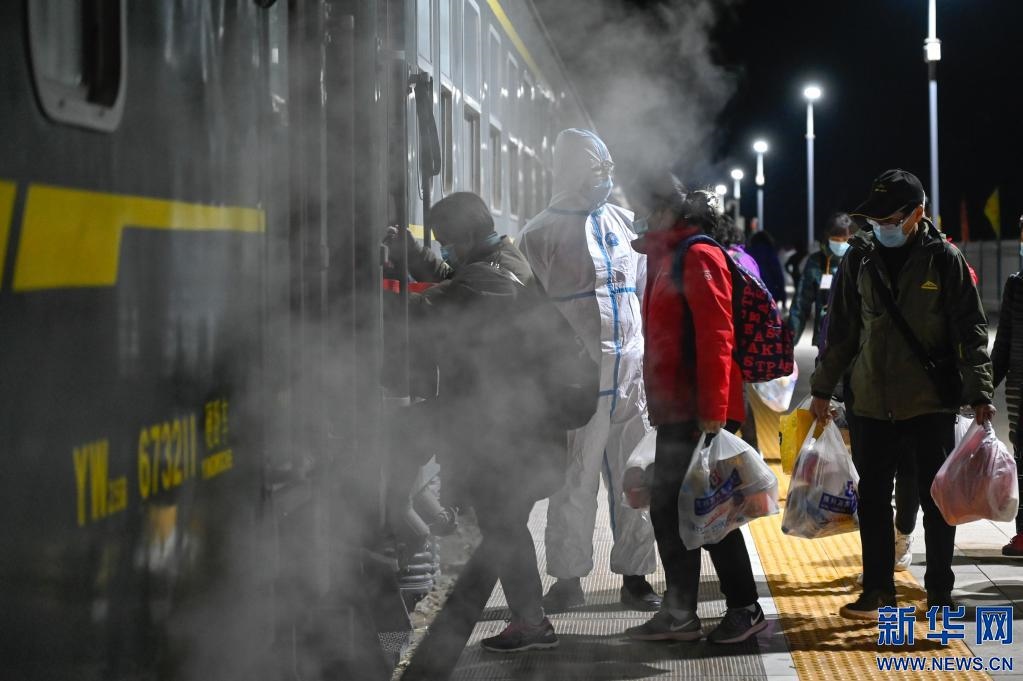 10月27日,滯留游客登上返程列車(chē)。新華社記者 賀書(shū)琛 攝