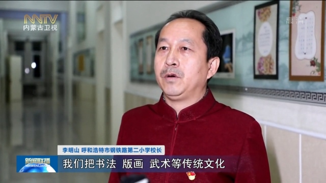 李明山 呼和浩特市鋼鐵路第二小學(xué)校長(zhǎng):我們把書(shū)法、版畫(huà)、武術(shù)等傳統(tǒng)文化融入到孩子們的課堂中,就是為了,讓他們從傳統(tǒng)文化中,感受我們民族的根,民族的魂,