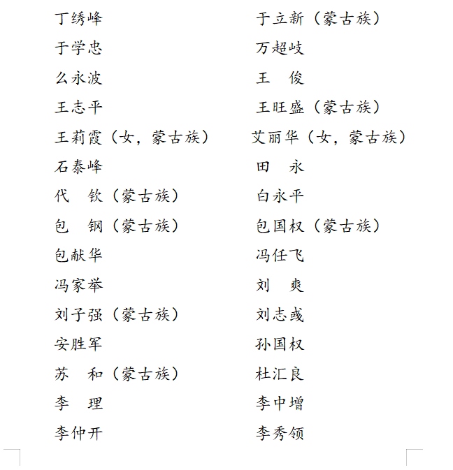 中國共產(chǎn)黨內(nèi)蒙古自治區(qū)第十一屆委員會委員名單(83人)