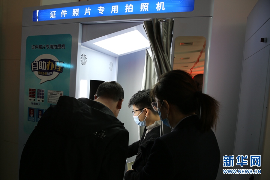 市民在賽罕區(qū)政務(wù)服務(wù)大廳“24小時政務(wù)服務(wù)超市”進(jìn)行證件照片自助拍照。新華網(wǎng) 石毅 攝