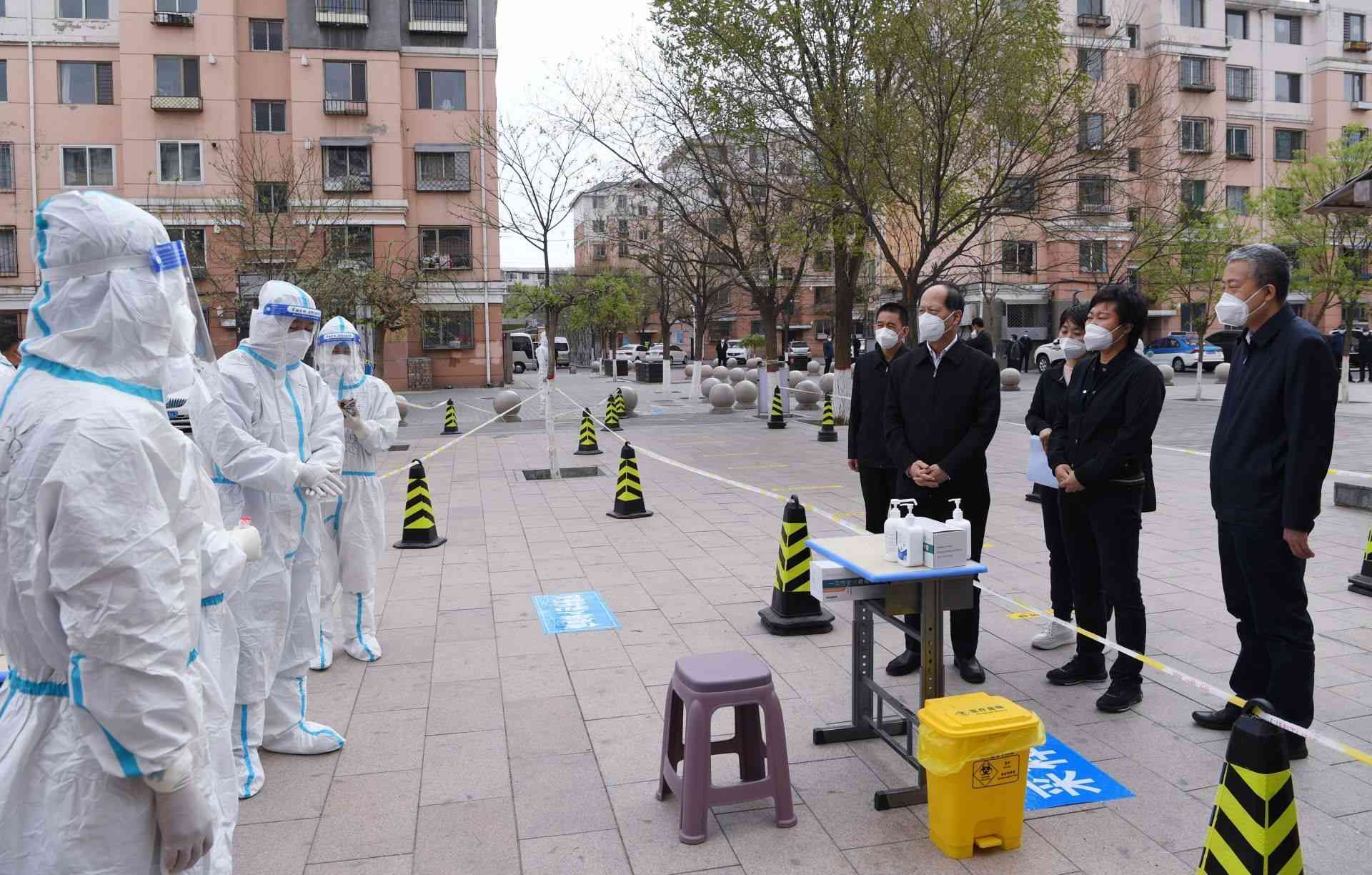 4月26日,自治區(qū)黨委書(shū)記、人大常委會(huì)主任石泰峰來(lái)到包頭市九原區(qū)龍?jiān)沸^(qū)B區(qū),了解疫情防控封控情況。內(nèi)蒙古日?qǐng)?bào)社融媒體記者 袁永紅攝