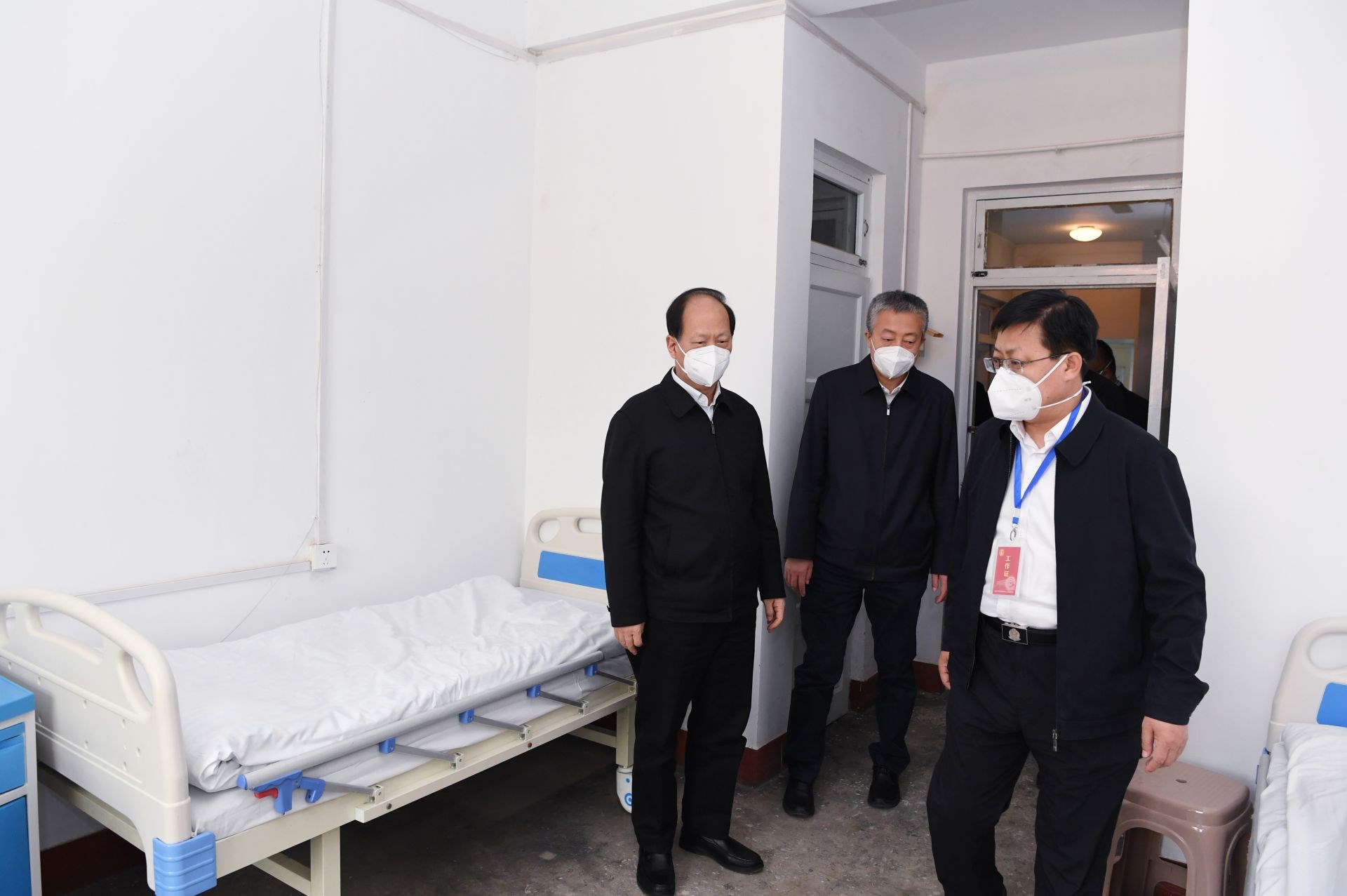 4月26日,自治區(qū)黨委書(shū)記、人大常委會(huì)主任石泰峰來(lái)到包頭市方艙醫(yī)院調(diào)研。內(nèi)蒙古日?qǐng)?bào)社融媒體記者 袁永紅攝
