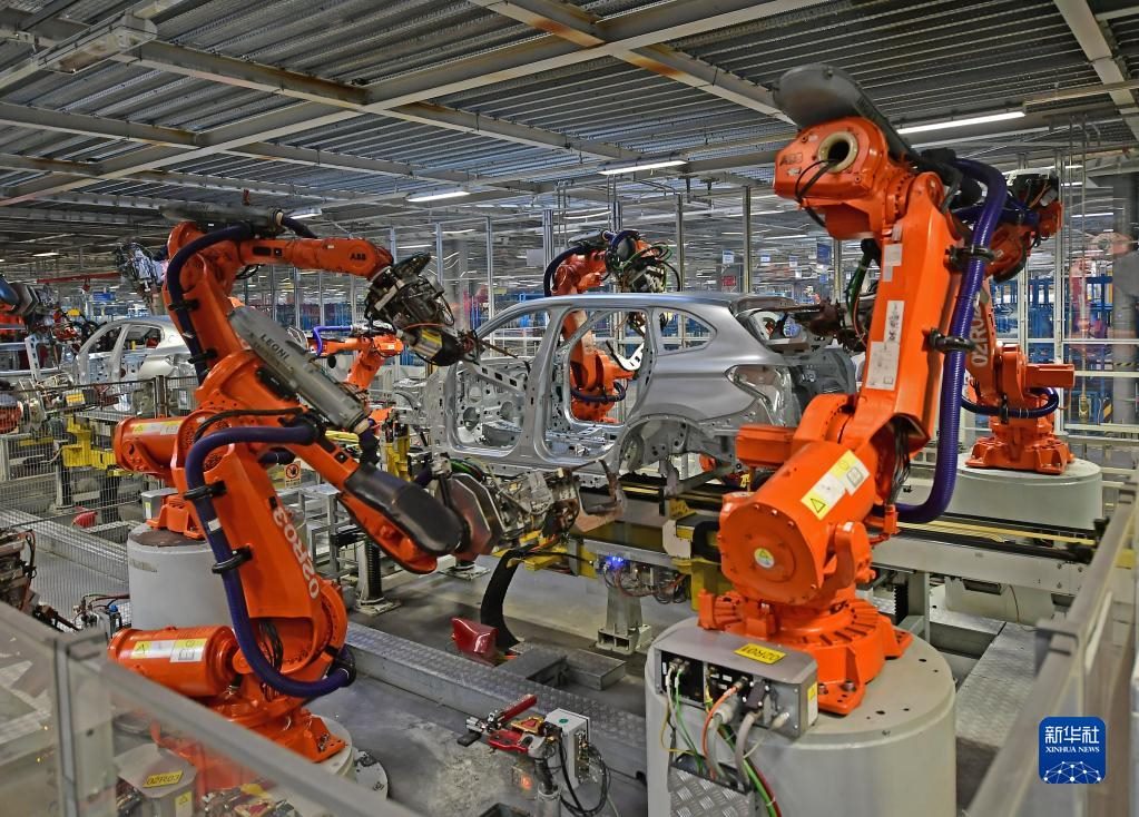 2022年2月16日,在華晨寶馬沈陽鐵西工廠車身車間,機(jī)器臂在焊接車身。新華社記者 楊青 攝