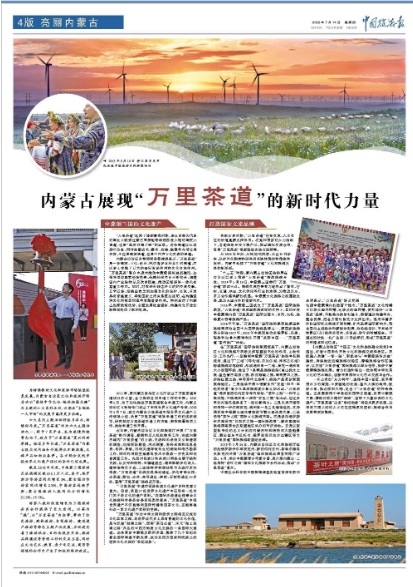 7月14日,《中國旅游報(bào)》4版刊發(fā)《內(nèi)蒙古展現(xiàn)“萬里茶道”的新時(shí)代力量》,全文如下: