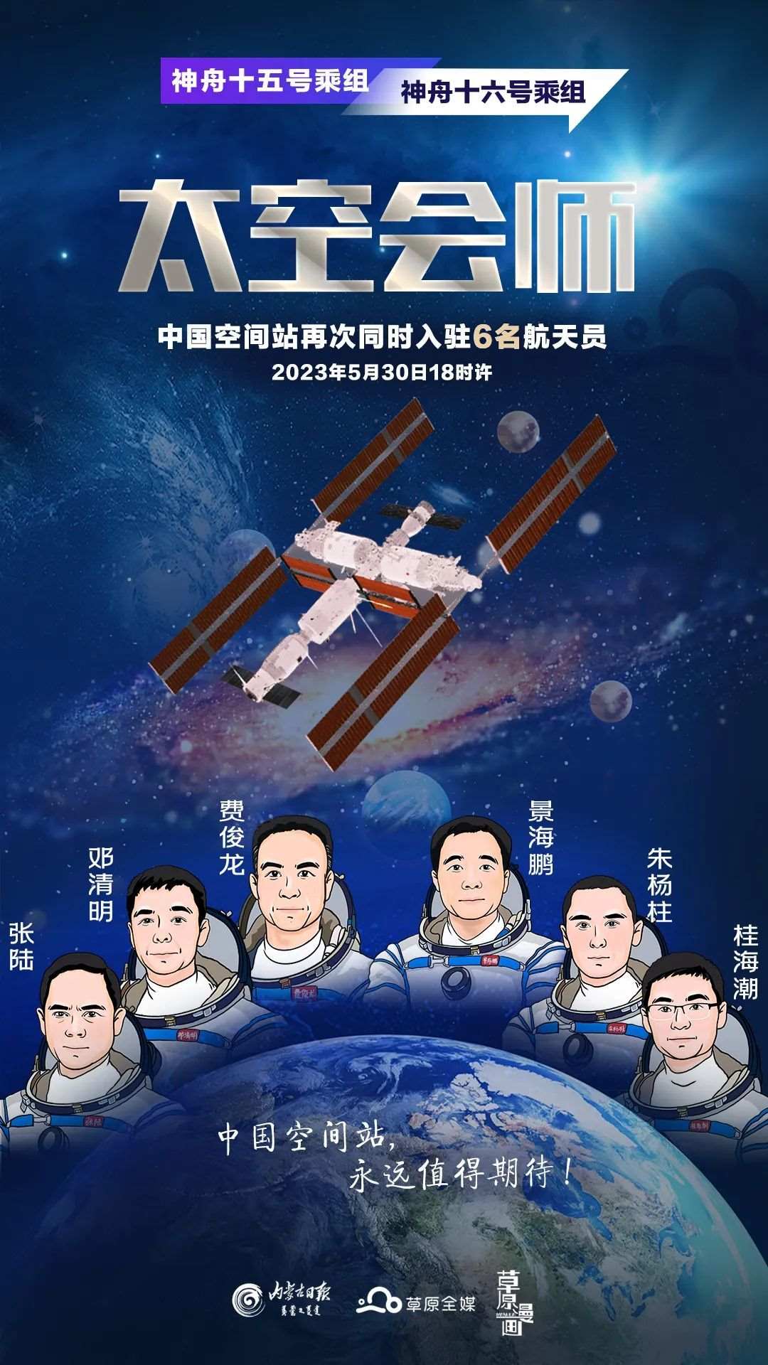 5月30日9時(shí)31分,神舟十六號載人飛船發(fā)射升空,“神十六”飛行乘組隨后在當(dāng)日18時(shí)許與“神十五”乘組會師太空,拍下全家福。這也是中國空間站的第二次太空會師。幾天來,“神十六”飛行乘組三類航天員的全新組合引起網(wǎng)友廣泛討論。