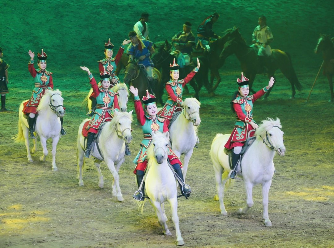 《千古馬頌》既具奪人眼球的觀賞性,又有直指人心的文化內(nèi)涵;既是一項(xiàng)填補(bǔ)內(nèi)蒙古馬文化駐場(chǎng)演出空白的旅游產(chǎn)品,又是一部挖掘蒙古民族與馬深厚情感的藝術(shù)史詩(shī),成為近年來(lái)提升內(nèi)蒙古自治區(qū)文化產(chǎn)業(yè)核心競(jìng)爭(zhēng)力、展現(xiàn)民族融合團(tuán)結(jié)奮斗的一部?jī)?yōu)秀作品。(攝影/內(nèi)蒙古日?qǐng)?bào)·草原全媒記者郭偉偉)