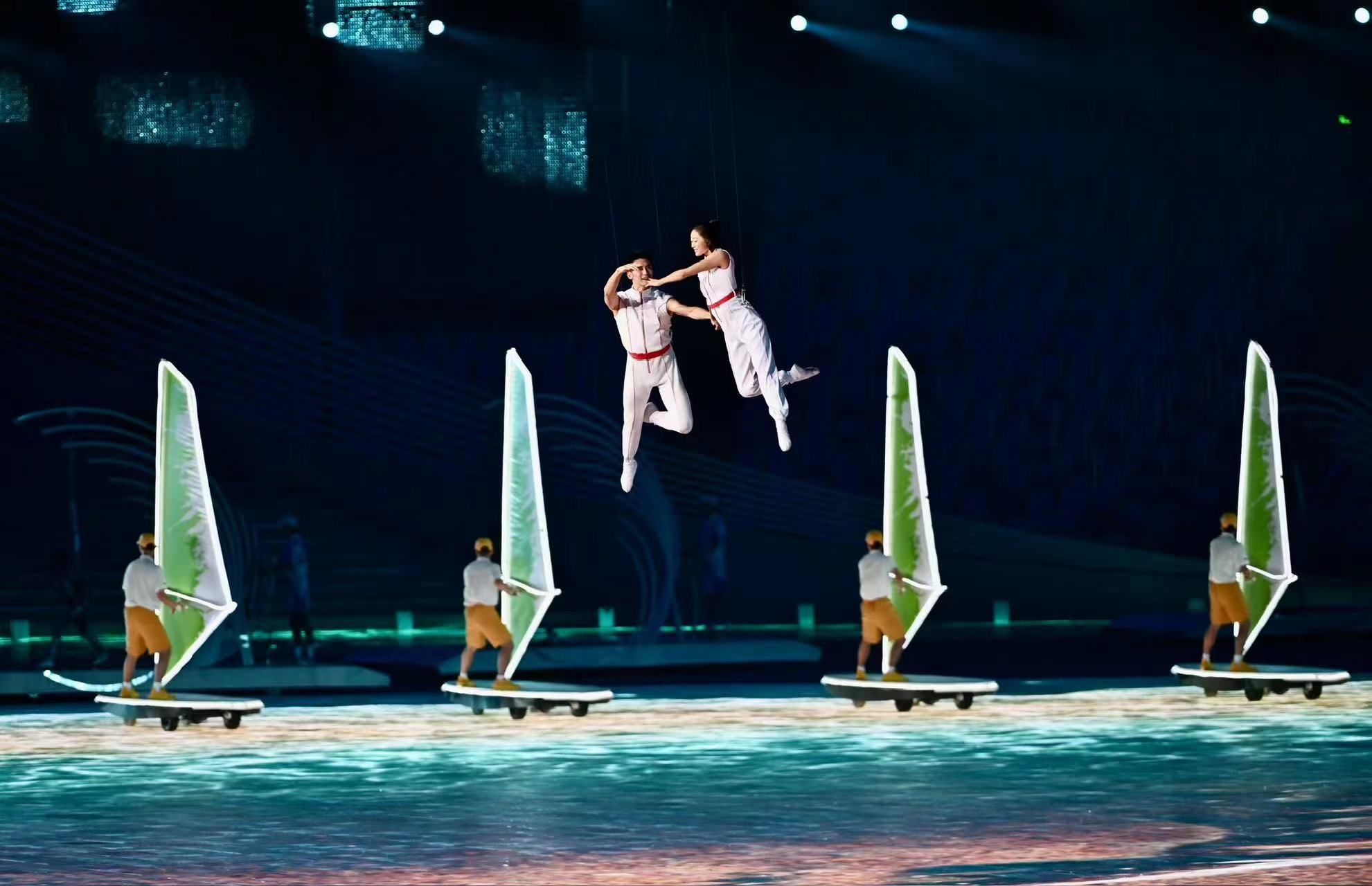 開幕式文藝表演以“潮起亞細(xì)亞”為總主題,分為《國風(fēng)雅韻》《錢塘潮涌》《攜手同行》三大篇章,寓意著新時代的中國正與亞洲、世界交融激蕩,像浪潮一樣奔涌向前。開幕式首次將3D雙威亞技術(shù)應(yīng)用于大型運(yùn)動場中,首次實現(xiàn)“數(shù)實融合”點火儀會開幕式在浙江省杭州市隆重舉行。開幕式文藝表演以“潮起亞細(xì)亞”為總主題,分為《國風(fēng)雅韻》《錢塘潮涌》《攜手同行》三大篇章,寓意著新時代的中國正與亞洲、世界交融激蕩,像浪潮一樣奔涌向前。開幕式首次將3D雙威亞技術(shù)應(yīng)用于大型運(yùn)動場中,首次實現(xiàn)“數(shù)實融合”點火儀式。本次亞運(yùn)會有來自亞洲45個國家和地區(qū)代表團(tuán)的1.2萬多名運(yùn)動員報名參賽,共設(shè)40個大項、61個分項、481個小項,是史上規(guī)模最大、項目最多、覆蓋面最廣的一屆亞運(yùn)會。