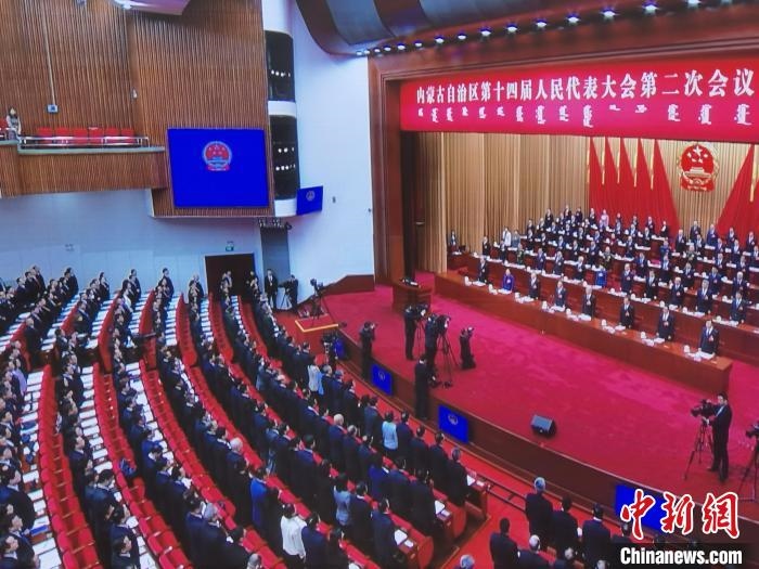 圖為內(nèi)蒙古自治區(qū)十四屆人大二次會(huì)議現(xiàn)場(chǎng)?! ±類燮?攝