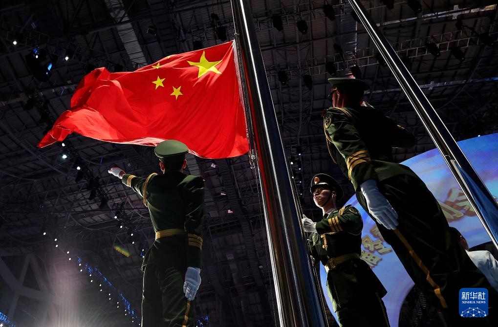??2月17日,中華人民共和國國旗在開幕式上升起。新華社記者 黃偉 攝