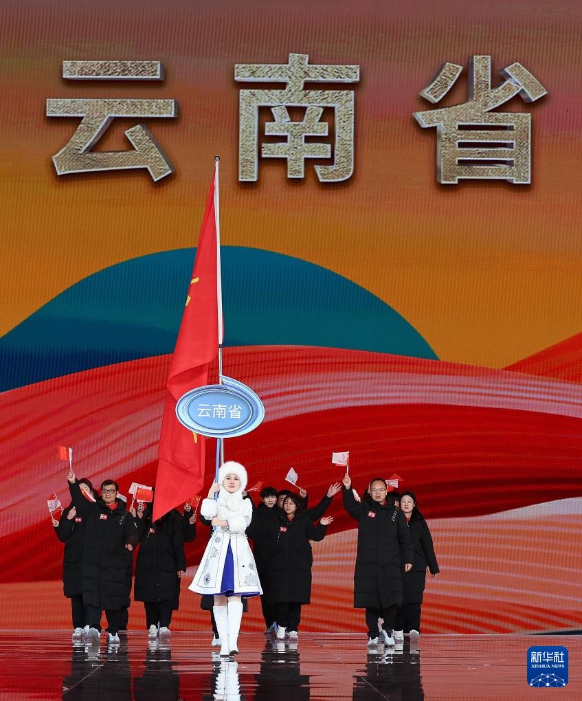??2月17日,云南省體育代表團在開幕式上入場。新華社記者 李博 攝