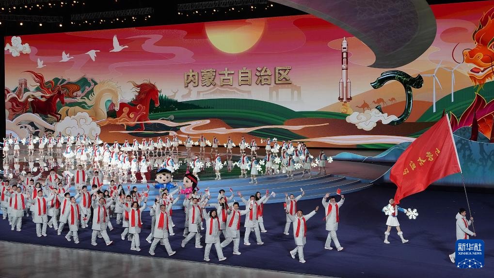 ??2月17日,內蒙古自治區(qū)體育代表團在開幕式上入場。新華社記者 李欣 攝