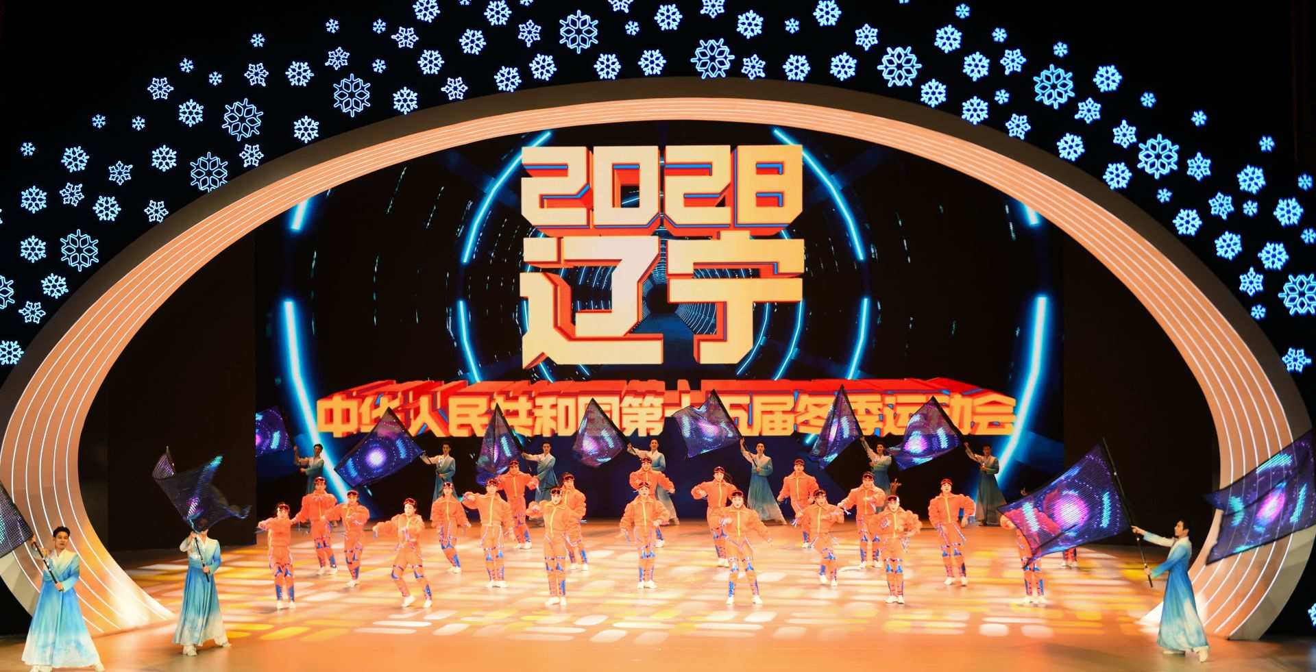 第十五屆全國冬季運動會承辦地遼寧省帶來精彩的文體展演《冬韻山海間》。 攝影:內(nèi)蒙古日報·草原全媒記者 李超然 程英軍 孟和朝魯