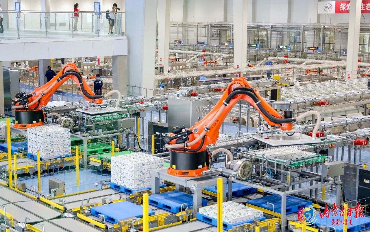 伊利現(xiàn)代健康谷液態(tài)奶全球智造標(biāo)桿基地繁忙的生產(chǎn)線。 (資料圖)